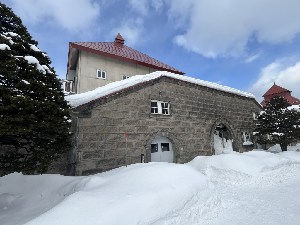 雪深い環境で静かに佇む、余市の熟成庫
